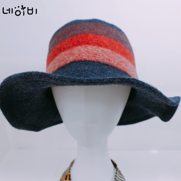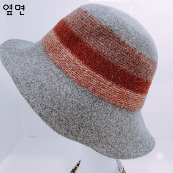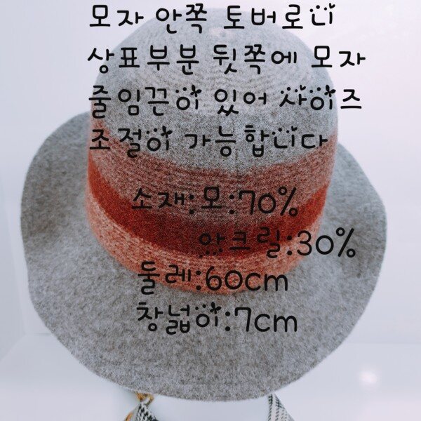 모자 둘레에 줄무늬가 세련된 느낌을 주는 따뜻하고 예쁜 모자 입니다.