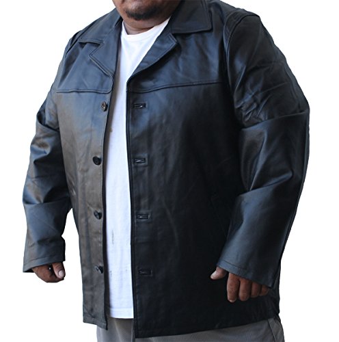 BIG SIZES Men Genuine Leather Long car Coat Jacket Buttons Closure