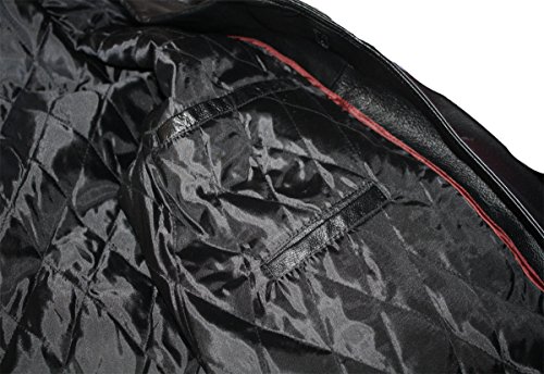 Product Description Premium long length genuine leather button down parka jacket for men with quilted lining, 4 button front, one inside and two outside pockets. A quality heavy leather coat for work or play. 0