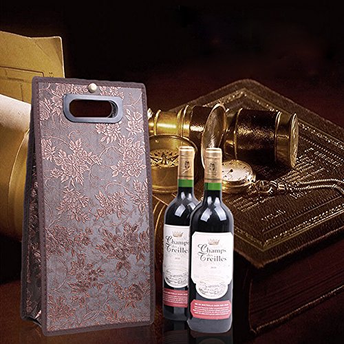 -. Title : iHappy Vintage Grape Leaves Leather 2-Bottle Foldable Wine Tote Bag Wine Travel Carrier,Brown