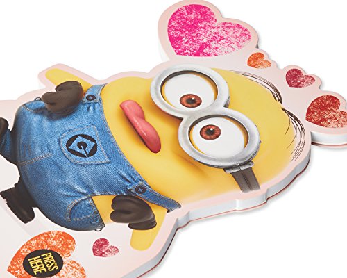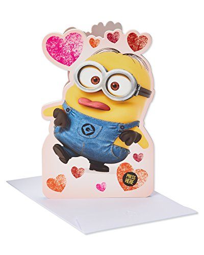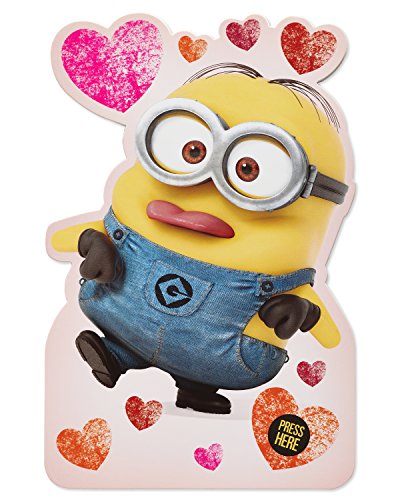 -. Binding : Office Product -. Brand : American Greetings -. Color : Despicable Me Valentine's Day Card -. EAN : 0064319207284 -. Feature : Inside message: you're a kid who's silly and sweet and really Awesome, too - that's why you're wished a Valentine's day that's just as great as you. / This juvenile Valentine's Day greeting card features audio innovation voiced by Despicable Me's Bob the Minion / Envelope included / Extra postage required -. Label : American Greetings Corporation -. Manufacturer : American Greetings Corporation -. Model : 5970378 -. MPN : 5970378 -. NumberOfItems : 1 -. PackageQuantity : 1 -. PartNumber : 5970378 -. ProductGroup : Office Product -. ProductTypeName : OFFICE_PRODUCTS -. Publisher : American Greetings Corporation -. Studio : American Greetings Corporation -. Title : American Greetings Despicable Me Valentine's Day Card with Sound -. UPC : 064319207284