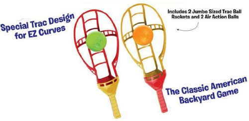 - Feature : Classic American outdoor game / Set contains two rackets and two balls / Rackets are jumbo-sized for easy catching / Specially designed for curves, throwing and catching / Play anywhere! Ages 6 and Up.