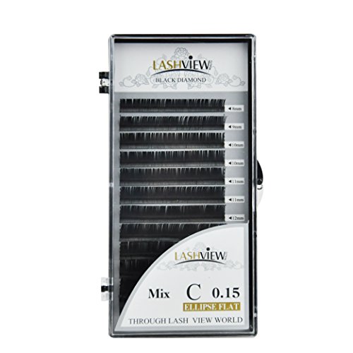 LASHVIEW Eyelash Extensions Ellipse Flat Application-friendly Lashes Pro Use .15mm C Curl Black (mix)