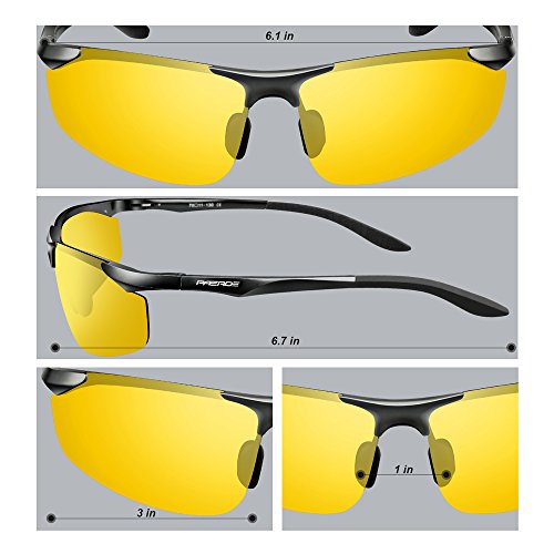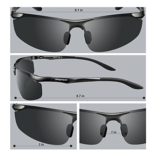 Brand:PAERDE Lens:100% Polarized UV400 Protection Lens,Blocks 100% Harmful UVA,UVB UVC Rays Frame Material:Al-Mg Metal Clour:As the picture Size: Lens Height --39MM(1.50 Inches) Lens Width--70MM(2.75 Inches) Temple Length--140MM(5.50 Inches) Nose Bridge--20MM(0.78 Inches) Frame Length--150MM(5.90Inches) Service:We provide 30 Day refund and lifetime Warranty on Frame Lens. If you have any problems in the future,You can reach us through wen.z.r@outlook.com or contact us through message.We will reply you within 24 hours!