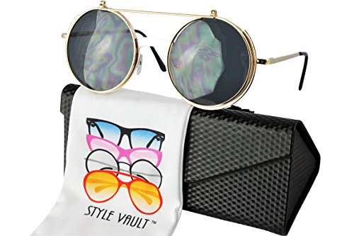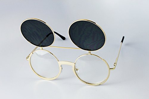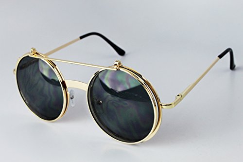 W3032-ec Style Vault Flip up Django Steampunk Metal Round Sunglasses