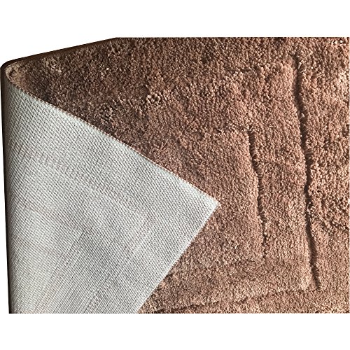 QIERAO Bath Mat Bathroom Rug Shag Non-slip Soft Microfiber Shower Mat- 20x32 - 3 Ply Construction - Highly Absorbent - Soft Underfoot - Easy Care Machine Wash (Light Brown)