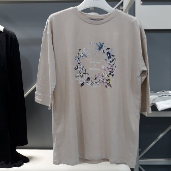 플라워 프린트가 포인트인 7부기장의 티셔츠입니다