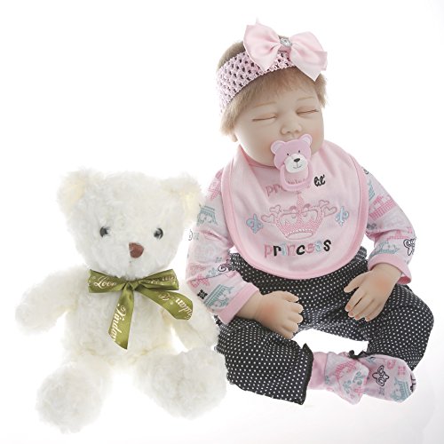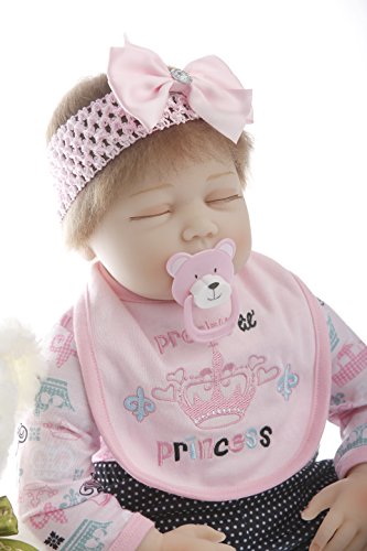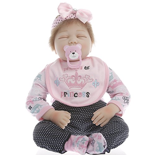 Baby Size:22inch 55cm(Newborn size) Weight:2.6LB(1.6kg) Baby can fits into newborn size(0-3m) baby clothes.a magnetic pacifier can fit the mouth.