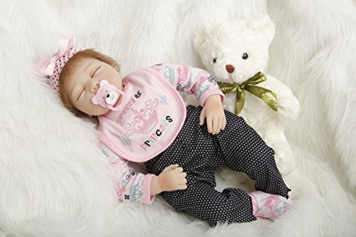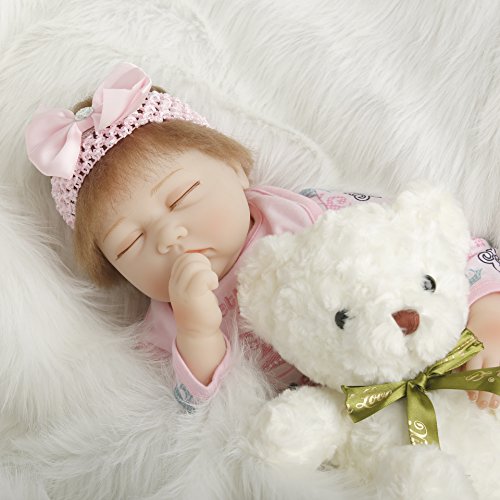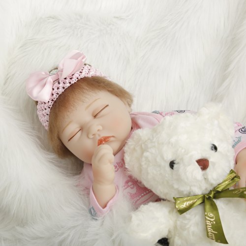 This is a perfect doll art designed by a famous artist.Cute and lifelike reborn doll.Made of high quality soft silicone.Comfortable touch.Safe non-toxic, pure environmentally friendly materials.Head,arms and legs are soft silicone,body is cloth filled with cotton.Can pose a lot like limbing,sitting and lying.Can not standing.Cloth doll body should not enter into the water.The doll will come with outfits and a magnetic pacifier.It will be a friend of your baby and the one of your family.Wish you love this.Feature