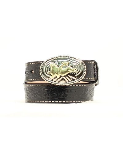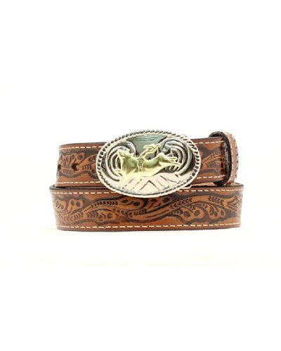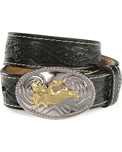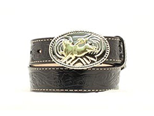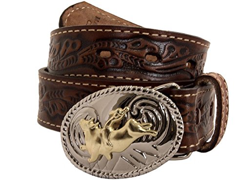Studio : Nocona Publisher : Nocona Binding : Apparel Product Description This Nocona children's belt offers quality leather and traditional western details. Silver-tone oval belt buckle features traditional rope edge, swirl accented background, and gold-tone cowboy and bull detail at center. Buckle is not removable. Embossed leather belt measures 1 1/4" wide. 0