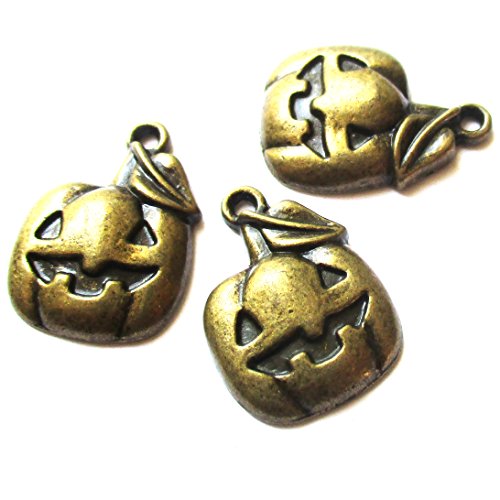 Heather's cf 40 Pieces Brass Tone Pumpkin Beads DIY Charms Pendants 19X14mm)