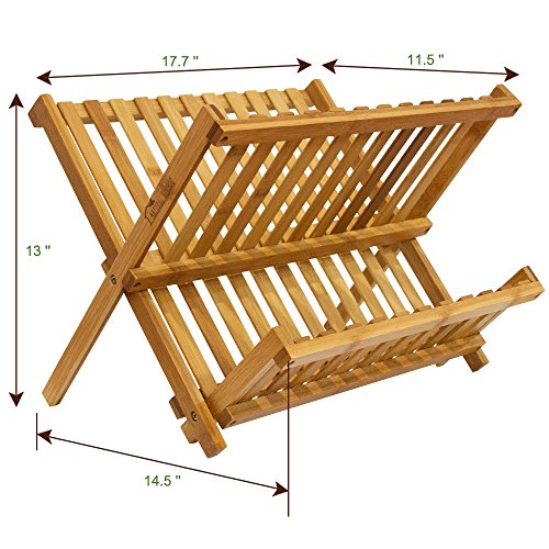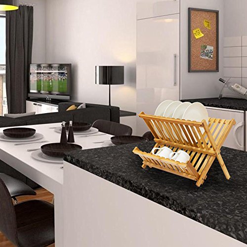- 100% NATURAL BAMBOO - The kitchen dish rack is made by 100% natural bamboo, that is alternative to wood, Safe & Environmentally-Friendly Premium Bamboo. Finished without stain to keep the natural feeling.