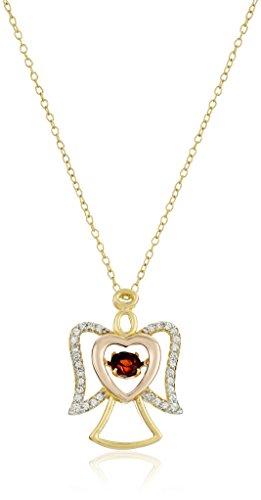 -. Title : 18k Gold and Rhodium Plated Sterling Silver "Dancing" Garnet & Created White Sapphire Angel Pendant Necklace, 18"