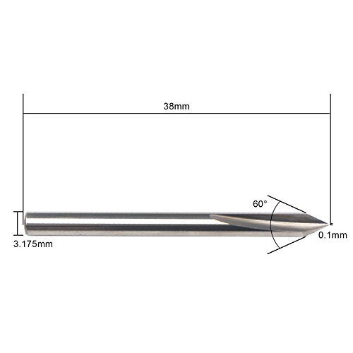 EnPoint™ Premium Carbide Tough Tip Cone Shape Metal Engraving Bit with 2-Flute Striaght Grooves 1/8" 3.175mm Shank 0.1mm Tip 60° CNC Marking Conical V-Bit for Steel Aluminum Brass MDF Wood