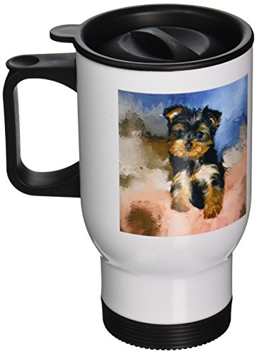 3dRose Toy Yorkie Puppy Travel Mug, 14-Ounce, Stainless Steel