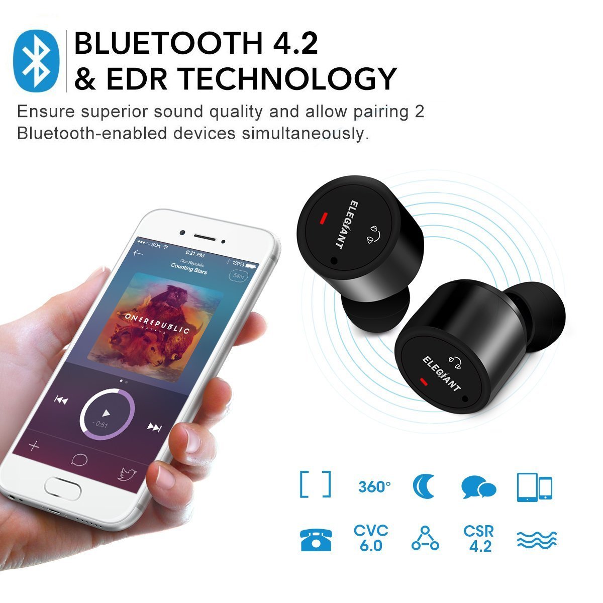 Bluetooth 4.2 adopted, conventional version keeps radio wave stable, low power consumption, sound quality of music also increases.