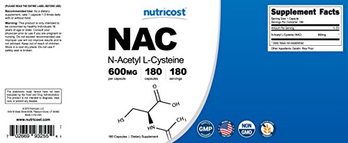-. Binding : Health and Beauty -. Brand : Nutricost -. Feature : 600mg of High Quality N-Acetyl L-Cysteine (NAC) Per Capsule / Free Radical Protection / Helps Maintain Cellular Health / Supports Detoxification and Intracellular Defense / Made in the USA -. IsAdultProduct : 0 -. Label : Nutricost -. LegalDisclaimer : These statements have not been evaluated by the Food and Drug Administration. This product is not intended to diagnose, treat, cure, or prevent any disease. -. Manufacturer : Nutricost -. MPN : ZL00749 -. PackageQuantity : 1 -. PartNumber : ZL00749 -. ProductGroup : Health and Beauty -. ProductTypeName : HEALTH_PERSONAL_CARE -. Publisher : Nutricost -. Studio : Nutricost -. Title : Nutricost N-Acetyl L-Cysteine (NAC) 600mg; 180 Capsules