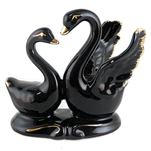 Feng Shui Two Black Swans - Hand Crafted and Decorated Fine Chinese Porcelain, Figurine 15188