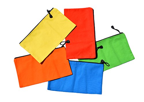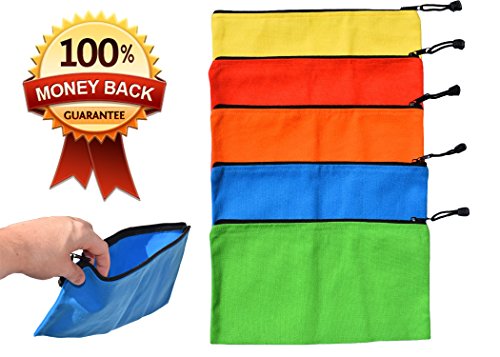 Canvas Zipper Bags - 5 Pack of Heavy Duty 16 oz. Canvas Bags with Strong Metal Zipper - 12.5" x 7" Canvas Tool Pouch - Make Up Organizer - School Supply Pouch - Durable Multi-Color Bags