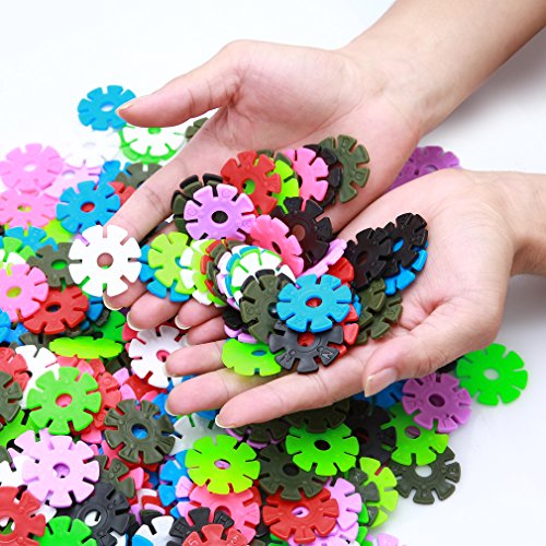 -. Feature : The gear flakes are made from qualified and durable plastic, non-toxic and BPA free, let your kids play it without worry. / It is an ideal first constructional toy for young children. These snowflakes is so simple to understand and put together that your kids can use their imagination to create whatever they want. The kids will love it and play with it whenever they visit. / It is an imagination based construction toy for young children. The things that can be built with this are so varied that the child really gets their imagination involved. The snowflakes are very brightly coloured and this attracts your kids attention and keeps it. It can be bulit to houses, spaceships, and countless other things as you want. / No need to worry about lack of engineering skills, if you want to challenge a child's skills in hand eye coordination give them the instructions and let them roll. With these snowflakes gears, you will find how good is it to see children playing with their hands and minds instead of rotting in front of the television. / Well packaged. Packaged with a clear storage bottle, its an ideal gifts for the kids. And you can put the snowflakes gears back into the bottle, will keep you house clean after your kids play, no mess any more.