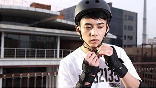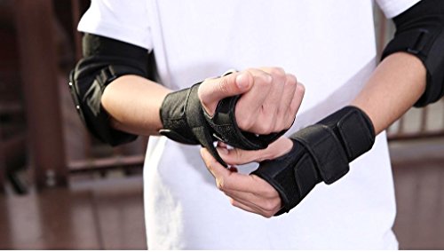 -. Feature : Use advanced PE Cold-resistant thicken materials, wear lightweight and comfortable, absorbent, breathable / Excellent waterproof & windproof performance, strong abrasion resistance, look stylish concise / Dimensions: Medium, for human height 160-175cm, 50.5-60.3kg, Head circumference:57-58cm, Knee circumference: 43cm or less, Elbow circumference: 26cm or less, Palm circumference: 18cm or less / Suit include 7 protective gear: Helmet(ABS+EPS+Sponge) * 1, Palm pad(Polyester+PE) * 2, Elbow pad(Polyester+PE) * 2, Knee pad(Polyester+PE) * 2, bring comprehensive security experience / Security is equally important with scenery along the way