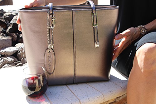 Product Description Bring your wine or favorite beverage along with the PortoVinoTM Wine purse that secretly holds a removable and replaceable reservoir with pouring spout. A beautiful fashion accessory that can be used with or without the reservoir. The PortoVinoTM Wine Purse allows you to bring the party along! This fashionable wine purse is designed to carry all of a woman's essentials including the essential drink on the go. The unique patent-pending hidden zippered insulated side pocket holds a party pouch which will hold and pour your favorite beverage. Each purse comes with a party pouch which acts a reservoir with a spout to hold and pour up to 2 bottles of wine or 1.5L of your favorite beverage. The backside of the PortoVino wine purse has a stylistic button flap that when opened will provide access to the pouring spout so you can easily pour on the go. This durable synthetic leather bag has sturdy shoulder straps for easy, comfortable carrying. The inside has an elegant black and white polka dotted lining. There is a spacious main compartment to hold a wallet and all the necessities. A great way to keep everyone hydrated - girlfriends, husbands, and kids! (wine/water/gatorade/juice of course!). 0