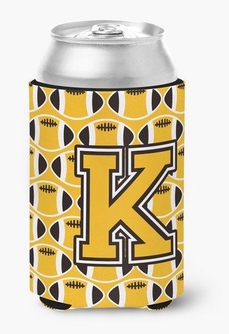 Caroline's Treasures CJ1080-KCC Letter K Football Black, Old Gold and White Can or Bottle Hugger, Multicolor