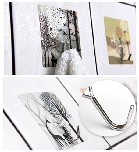- EASY TO USE- This adhesive hook is super easy to use. Just clean the surface, peel off the plastic cover on the back and press the basic of the hook to contact steady from middle of the edge.This sticky wall hooks have excellent advantage of waterproof,mouldproof and oilproof.