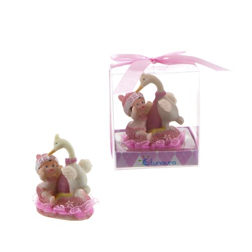 -. Feature : Baby Playing with Stork Favors - Pink, Set of 12 / Baby playing with stork while sitting on the a towel / Comes encased in an appealing gift box with clear plastic front and a satin ribbon bow / These favors are designed for gifting right out of the box and will leave an everlasting memory on your guests / Made of Poly Resin
