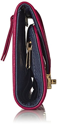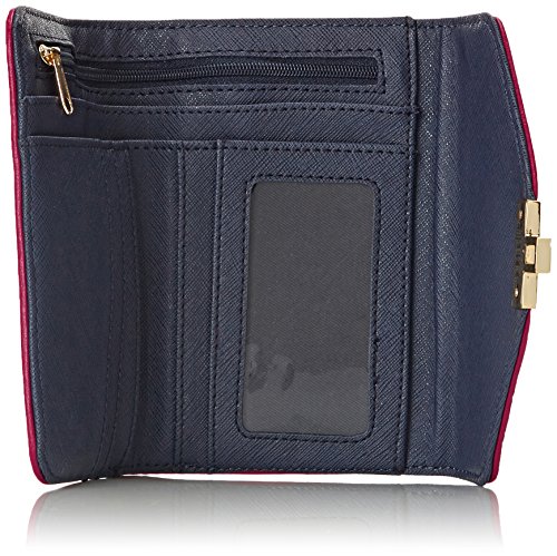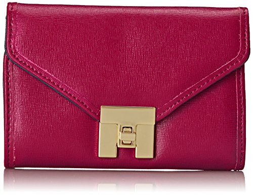 Crosshatch-textured wallet featuring envelope front flap with gold-tone logo turn-lock