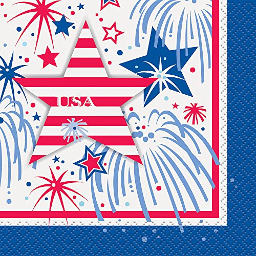 - Package of 16 USA Fireworks Patriotic Beverage Napkins