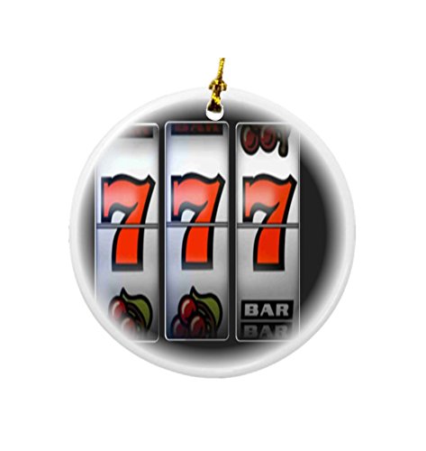 Rikki Knight Slot Machine Lucky Seven Design Round Porcelain Two-Sided Christmas Ornaments