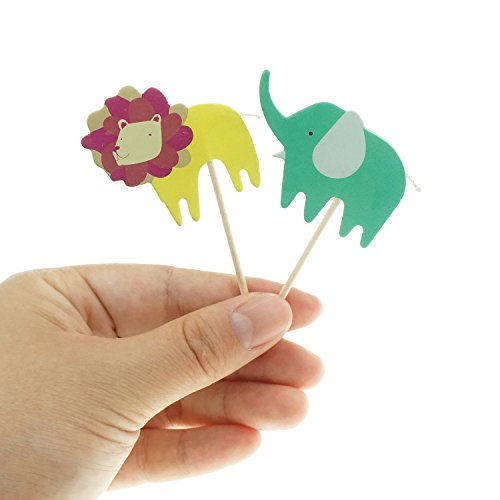 Shxstore Zoo Animal Cake Toppers Cupcake Picks For Jungle Theme Baby Shower Birthday Party Decorations Supplies, 24 Counts