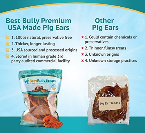 -. Binding : Misc. -. Brand : Best Bully Sticks -. Feature : Made in the USA: Hand-Inspected to Ensure our Pig Ears are Free of any Hormones or Antibiotics / 100% Natural Pig Ears: Authentic Pork Taste that Dogs Crave! / Healthy Snack: Packed with Protein to Provide the Nourishment Dogs Need / Oven-Baked: Slow-Cooked to Preserve the Nutrients Dogs Need and the Meaty Flavors they Love / No Preservatives, Additives or Chemicals that Could Harm your Pup -. Label : Best Bully Sticks -. Manufacturer : Best Bully Sticks -. PackageQuantity : 1 -. ProductGroup : Pet Products -. ProductTypeName : PET_SUPPLIES -. Publisher : Best Bully Sticks -. Studio : Best Bully Sticks -. Title : USA Pig Ears by Best Bully Sticks - Thick-Cut, All Natural Dog Treats