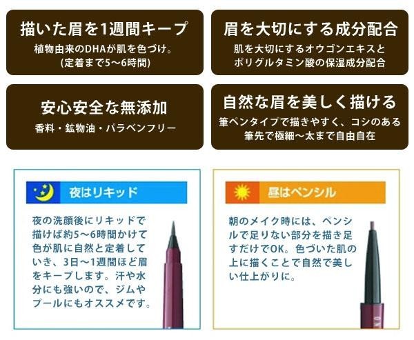 | 内容量 | リキッド0.3ml、ペンシル0.1g |