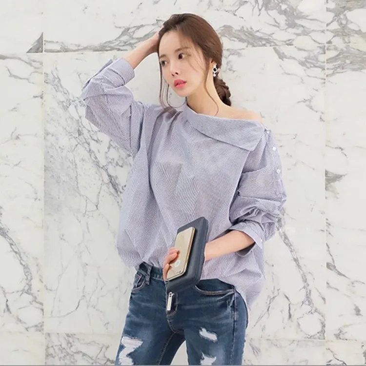 Clothes: Classic Striped Oblique Collar Casual Shirt