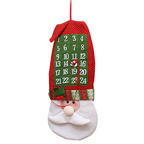 -. Feature : Santa Claus calendars,Christmas countdown calendar,countdown calendar Christmas,santa clause Christmas ornaments,advent calendars for adults.Style:Santa claus design,advent calendar,cute,lovely. / Style:countdown to Christmas Calendar,remind you the coming Christmas,you can hanging it outdoor or indoor on the Christmas tree and other place.a mazing Christmas gift for your friends and family. / Size:51*21cm(19.89*8.19inch) / Weight:120g / Package include:1*Santa Claus Advent Calendar