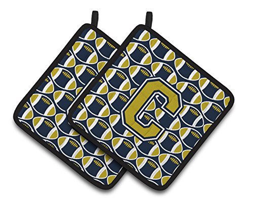 Caroline's Treasures Letter C Football Blue & Gold Pair of Pot Holders CJ1074-CPTHD, 7.5HX7.5W, Multicolor