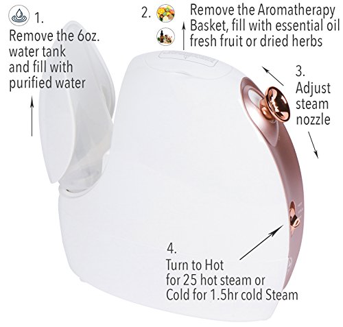💁🏼4 GREAT FUNCTIONS IN 1- relaxing and deep cleansing hot steam, rejuvenating cold steam, an aromatherapy essential oil basket diffusing fragrance and a home humidifier.