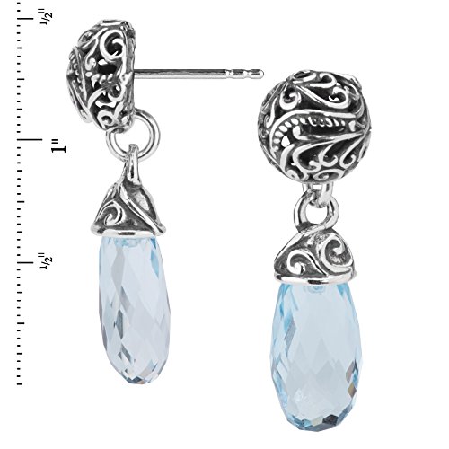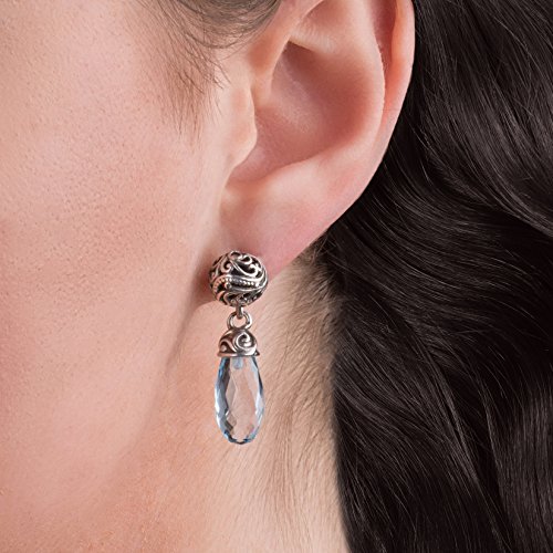 These earrings shimmer with every movement of the gemstones. Two 7 carat blue topaz gemstone drops capped with sterling silver dangle merrily from posts that feature Carolyn Pollack's signature scroll and rope design. The faceted gemstones catch the light from every angle.