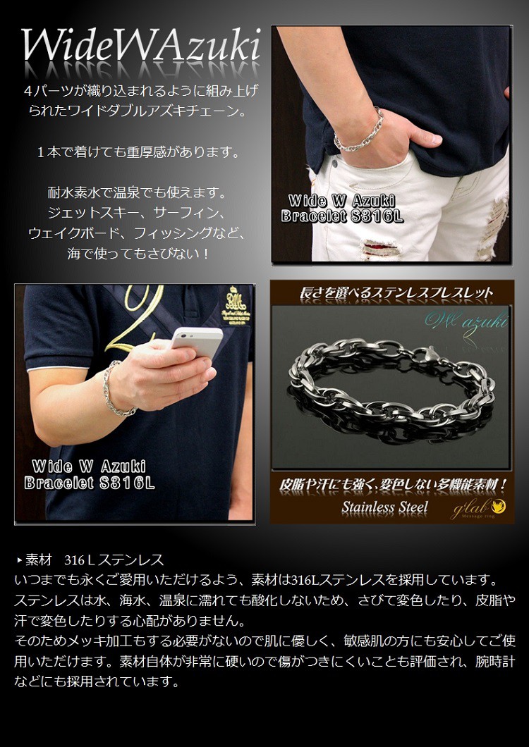 お風呂はもちろん、仕事中も肌身離さず身に着けていたい方におすすめの変色しないステンレスチェーン!長さがカスタムができる!最高にかっこいいステンレスチェーンブレスレット!自分サイズに合わせてセミオーダーしたブレスは絶対にかっこいい!※5400円以上ご購入の方は送料無料配送方法のご指定は出来ませんのであらかじめご了承ください。沖縄県、一部離島の方は日時指定が出来ません。代引き手数料は全国一律324円となります。ステンレスは肌に優しく、敏感肌の方にもお勧めの素材です。皮脂や汗、水、海水、温泉などで濡れてもほとんど変色せず、傷にも強いことから、腕時計の素材としてもよく使われています。
