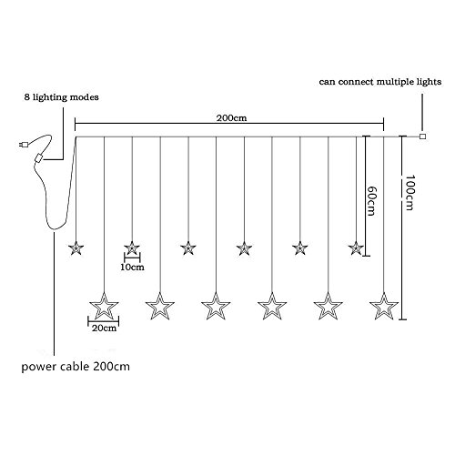 - ☆220v working voltage, 6pcs total big stars diameter 20cm, 6pcs small 10cm stars diameter. Width of the light curtain is 2m, with 2 m power cable, US plug.