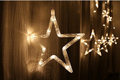 - ☆Safe, Environmental protection, energy saving and long-lived. Star curtain lights can be great decoration for your home, patio, garden, yard, wedding, Christmas, holiday and party - can be bound by a plug at the end of the lights. You can buy more games and connect them to create the scene you want.