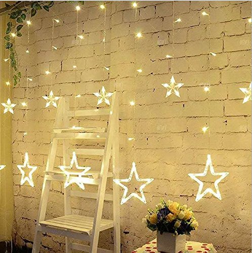 Locisne 138 LED Linkable 12pcs Star 1m2m Light Curtain Window Lights with 8 Modes for Christmas Outdoor/Indoor Landscape Spotlight New Year Holiday Christmas Tree Wedding Light(warm white)