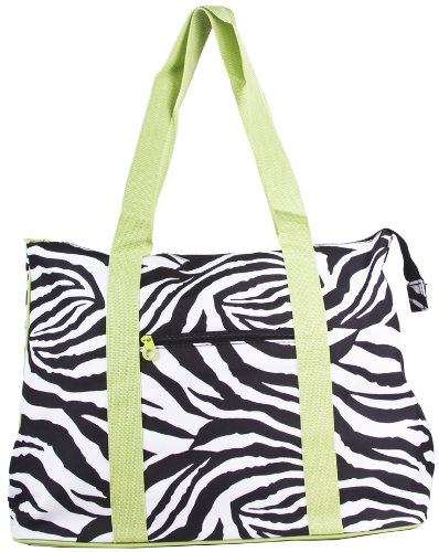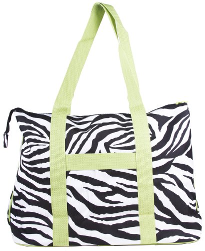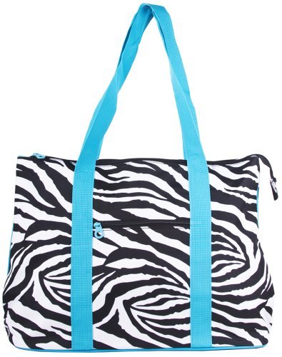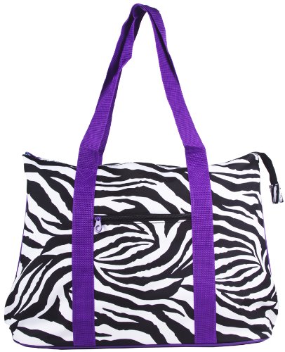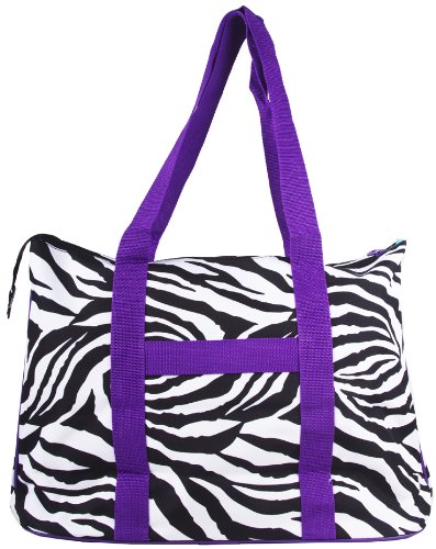 Product Description The possibilities are endless with this fabulous over sized tote bag. Throw it over your shoulder to take shopping or to the gym. Use it as carry-on luggage for the chic jet setter or a diaper bag for the fashionable mom on the go. In a fun designer print, it makes an ideal overnight bag for slumber parties! Cute design makes it an ideal option for a gear bag for cheer squads or dance teams! Makes a great school bag and can handle text books and binders because it's made out of durable microfiber and has sturdy straps. Keep smaller, easy to lose items close at hand with the interior zipper pocket. This light weight weekender bag is lined with linen for easy cleaning. This bag rests steadily on metal feet to keep it up off the floor and clean! Features a top zipper closure and an exterior zipper pocket for added convenience! Comes with a matching coin purse too! 0
