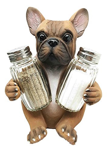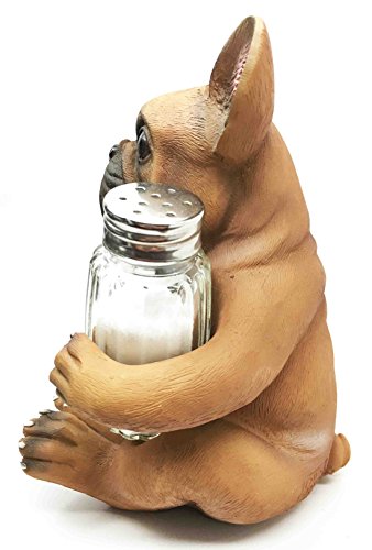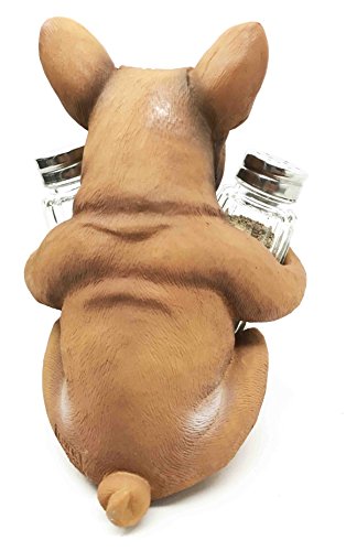 Adorable French Bulldog Hugging Spices Salt Pepper Shaker Holder Figurine
