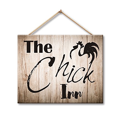 Hermosaa The Chick Inn Chicken Coop Decor Rustic 10 x 16 Inches Wood Plank Design Hanging Sign