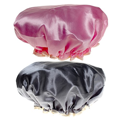 SUMAJU Elastic Bath Cap, 2Pcs Double-Layer Waterproof Shower Hat for Women Hair Beauty