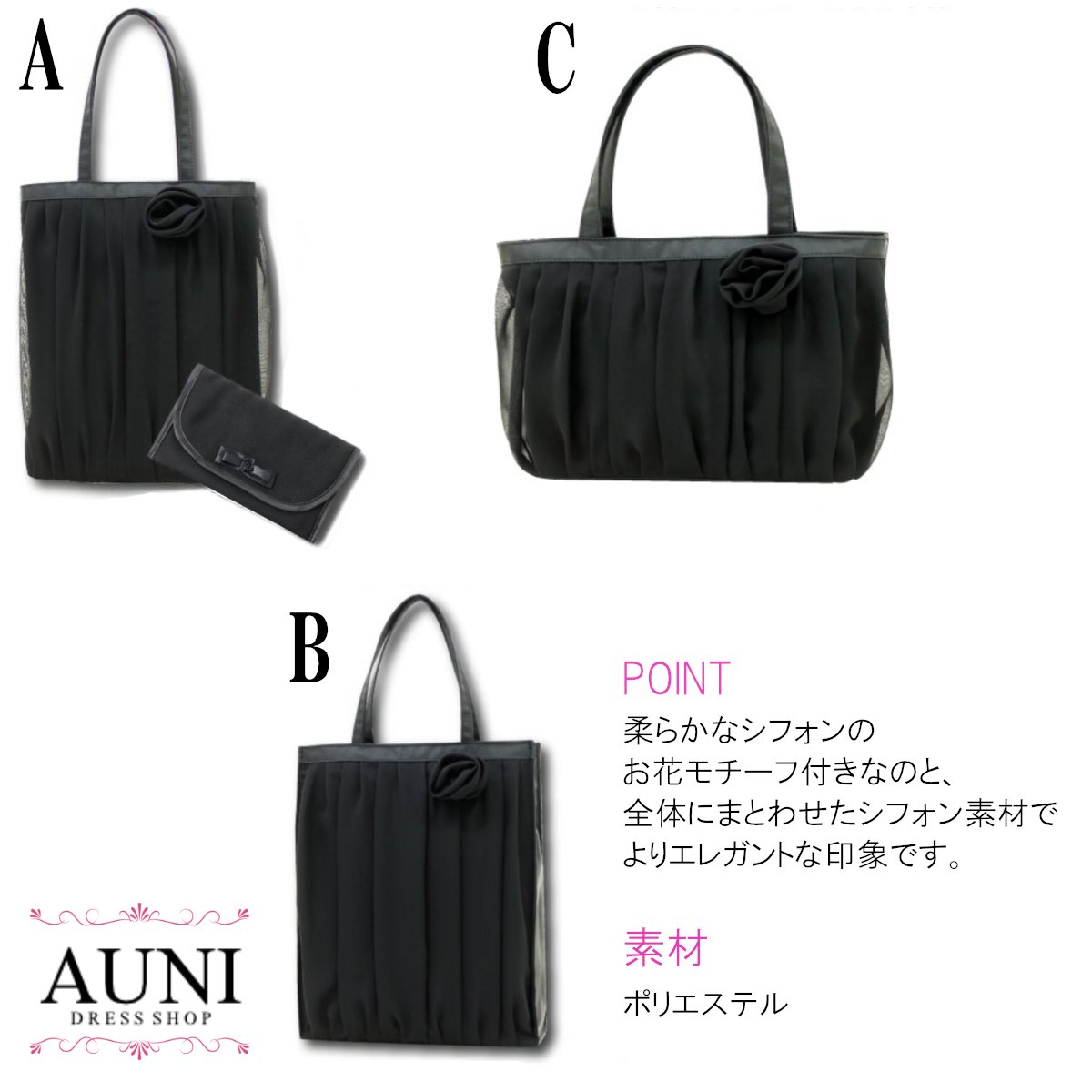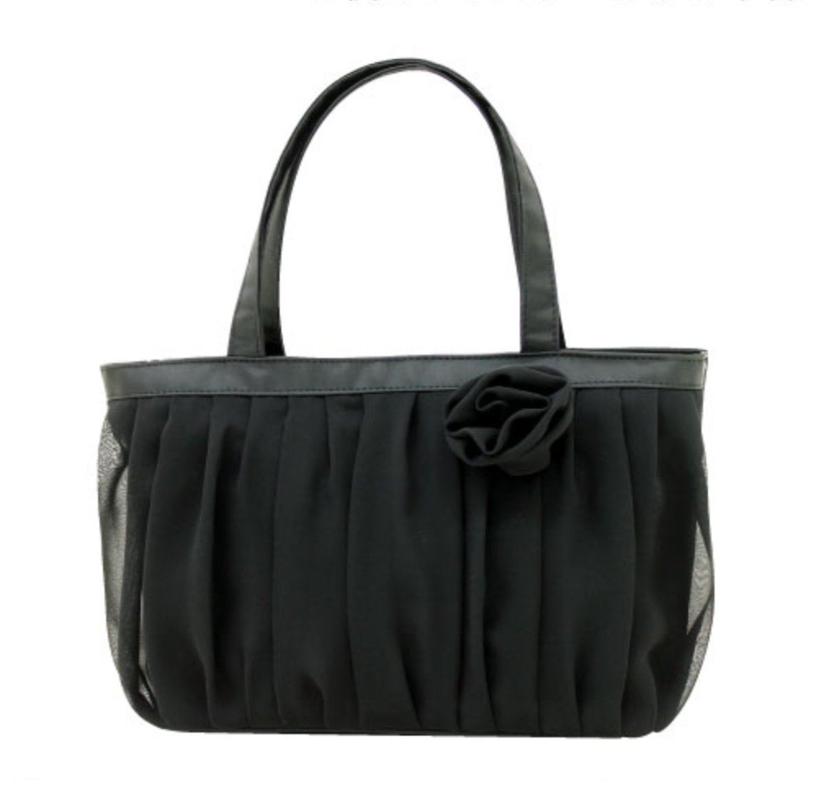 (Auni) AUNI Chiffon pleat black formal hand sub bag Flower motif