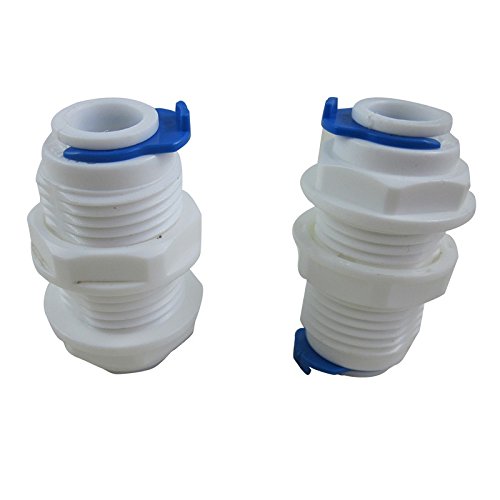 TmallTech 3/8" inch White Fittings Bulkhead Connector Tube Quick Connect for RO Unit (Pack of 2)